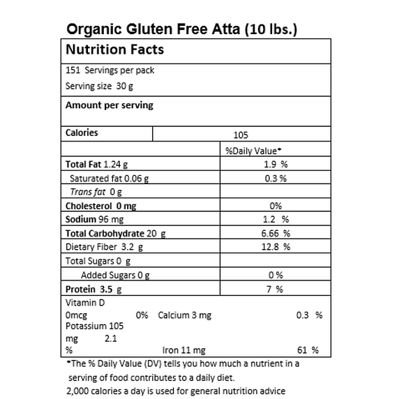 Discover the goodness of gluten-free chapati flour by Just Organik. Sourced from premium ingredients, this flour allows you to enjoy traditional Indian chapatis without gluten, catering to dietary preferences and sensitivities. INGREDIENTS: Amaranth, Brown rice, Sorghum, White rice, Barnyard, Chickpea. RICH IN PROTEIN: The combination of chickpeas and sorghum in the flour provides a good source of plant-based protein. Protein is essential for tissue repair, muscle maintenance, and overall growth and development.